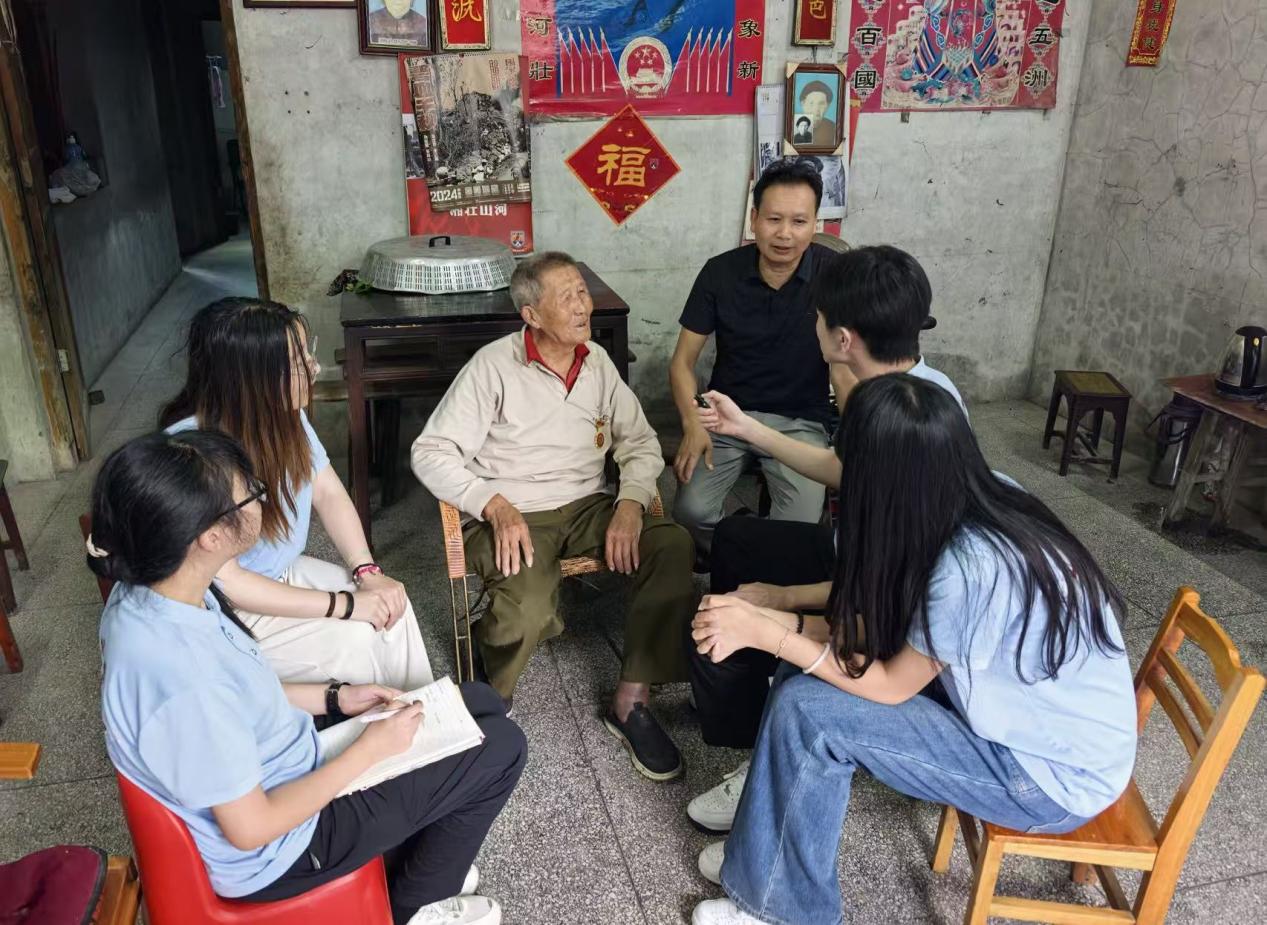 在湖南省溆浦县,实践团在龙潭镇党委组织委员孙腾同志的带领下,拜访了亲历过抗日战争的老战士—韩直承、吴和文。“你们年轻人,一定要好好珍惜现在的生活,把国家建设的更好!”韩直承老战士拉着实践团成员的手深情说道。在合心村吴和文老先生的家中,我们见到了最动人的“和平画卷”:96岁的吴和文老先生精神矍铄,四世同堂。他的孙子在一旁耐心地为听力渐弱的爷爷翻译着访谈内容,蹒跚学步的重孙女,则天真烂漫地与实践团成员嬉戏玩耍,清脆的笑声洒满小院。